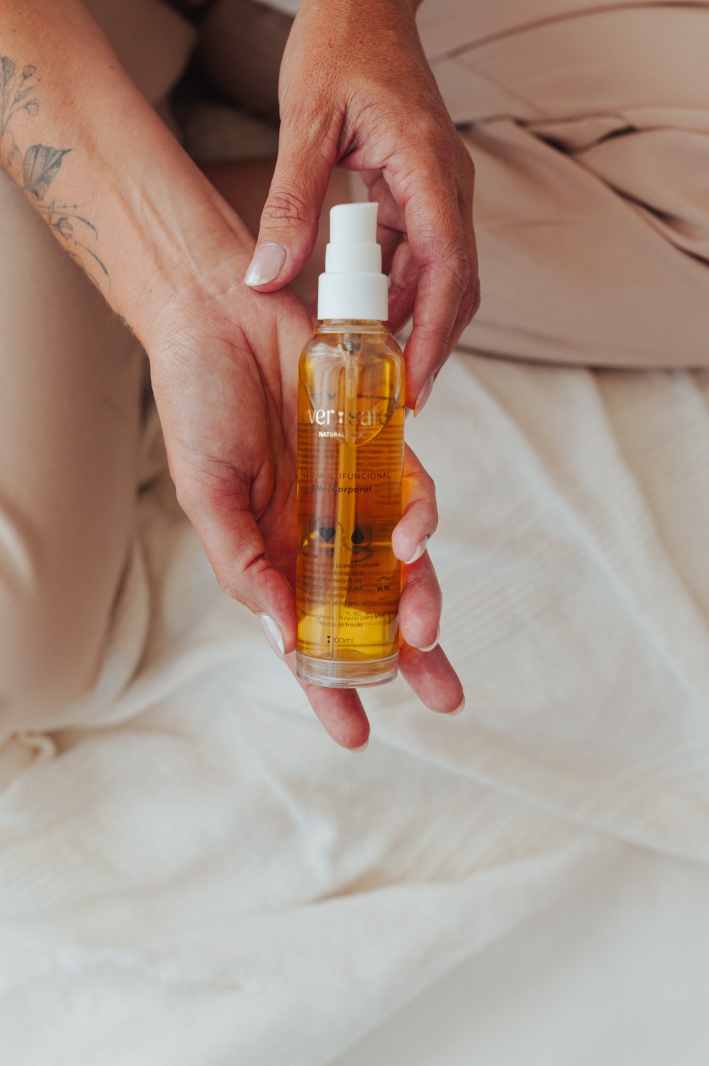Nessa hora, um óleo com boa proposta de uso entra como apoio sensorial: ajuda a mão a deslizar melhor, torna o momento mais agradável e dá materialidade ao ritual.